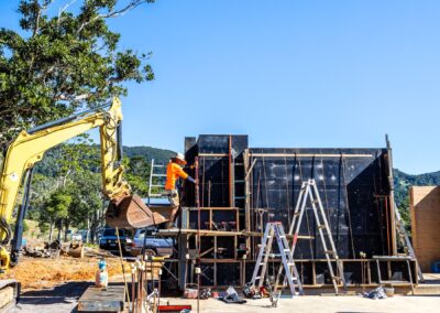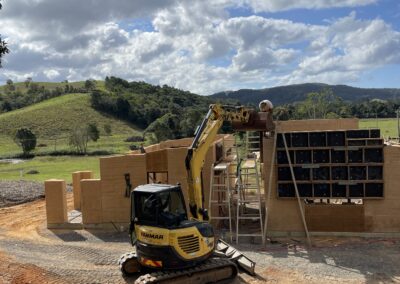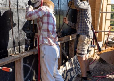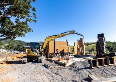 Our rammed earth walls were constructed from the earth dug on-site to create a dam to service Mayan Farm. By adding crushed granite and white cement, the ideal blend was created to provide perfect consistency for the building process and meet engineering and certification requirements. Steel reinforcement was used in the building as extra security, similar to core fill block walls.